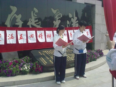 (上海鲁迅中学学生在五四所属滨海古园“英烈园”瞻仰英烈)
