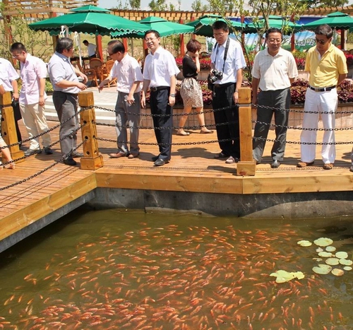 在光明瑞华果园,吕彤轩处长等一行坐在观光车上游览了瑞华果园的各个景点。在听取了公司领导的介绍之后,吕处长得知瑞华果园时跃进有限公司发展“一体两翼”现代农业新格局,打造现代观光休闲农业的浓重之笔。吕彤轩处长等视察了瑞华果园大棚葡萄、猕猴桃园、采摘长廊和仙桃园等处,并在摘月台品尝了黄桃、葡萄等新鲜水果,走进亲水平台与鱼儿同悦。