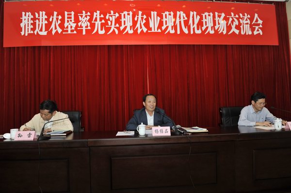 针对农垦率先实现农业现代化,杨绍品提出要着力抓好六项工作,一是要着力提升农业综合生产能力,二是要着力创新完善农业经营机制,三是要着力优化农业产业结构,四是要着力推进适用先进技术先行先试,五是要着力提升农产品质量安全水平,六是要着力打造一支现代农业人才队伍。