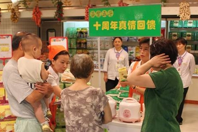 “瀛丰五斗十周年真情回馈”周末轮店促销活动进一步拉近了高端好米与消费者的距离。尽管到目前只有6个周末,但是,“瀛丰五斗”有机米的市场销量同比有了明显上升。 (陈双依)