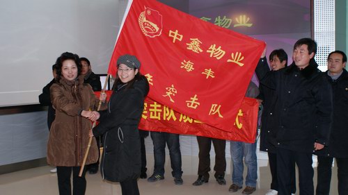为了锻造奋力拼搏精神,更好地为主业一线员工提供优质的后勤保障服务,1月下旬,牛奶集团中鑫物业在海丰管理处会议室举行青年突击队成立仪式,中鑫物业经理为青年突击队授旗,这标志着中鑫物业首批青年突击队闪亮登场。全体“青年突击队”队员起立,高擎队旗,并依次在“中鑫物业青年突击队成立仪式”横幅上签字。
