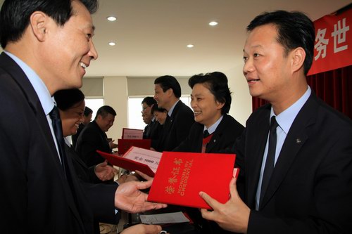 (公司领导为先进颁发荣誉证书)