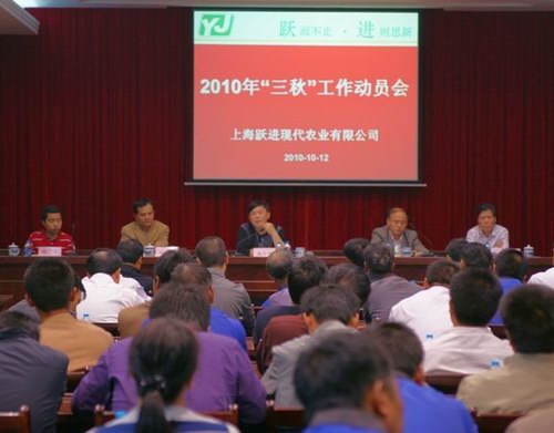 跃进有限公司副总经理、跃进现代农业有限公司总经理、党总支书记施士忠在会上解读了公司前三个季度的经济运营情况,通报了2011年跃进农业公司在种源农业、米业规模、品牌建设、人才引进以及现代农业发展方面的重要举措。他强调,今年“三秋”农忙恰逢首届上海崇明·光明丰收节和第二届“自然之子”跃进行——万名市民看光明现代农业旅游节,时间紧、任务中,广大党员干部要发扬艰苦奋斗的精神,狠抓实干,以“三秋劳动竞赛”为抓手,切实做好水稻收小麦播种、粮食进仓等农忙各项工作,积极配合做好秸秆禁烧和旅游节活动,确保“三秋”农忙各项任务圆满完成。