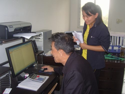 (喻传洲教授在查阅、分析育种数据)