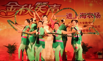 晚会由一首美妙动听的《好运来》拉开帷幕,王汝刚、李久松、毛猛达等著名艺术家为上海农场居民带来了一个又一个精彩绝伦的滑稽小品、相声等节目,应接不暇的搞笑演出让现场爆发出一阵又一阵热烈的掌声和欢笑声。本次慰问演出与以往有所不同,我们在享受别人带来欢乐的同时,还融入了自己的活力元素,在晚会中穿插了农场两首场歌的歌舞表演,即四人混声合唱《我们的农场,我们的家园》、女声伴舞独唱《迷人的田野》,两个充满年轻色彩的节目不仅将晚会推向了高潮更向外界展示了上海农场新一代富有朝气的一面。