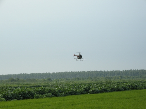 ??? 据研究所的专家介绍,无人驾驶小型直升机具有作业高度低,飘移少,可空中悬停,无需专用起降机场,旋翼产生的向下气流有助于增加雾流对作物的穿透性,防治效果高,远距离??夭僮?,喷洒作业人员避免了暴露于农药的危险,提高了喷洒作业安全性等诸多优点。本试验课题着重研究适用于我国水田农药喷施作业的低空低量航空喷施技术及装备,解决制约实现水稻病虫害防治机械化的关键问题,为水稻生产全程机械化提供技术与装备支撑。