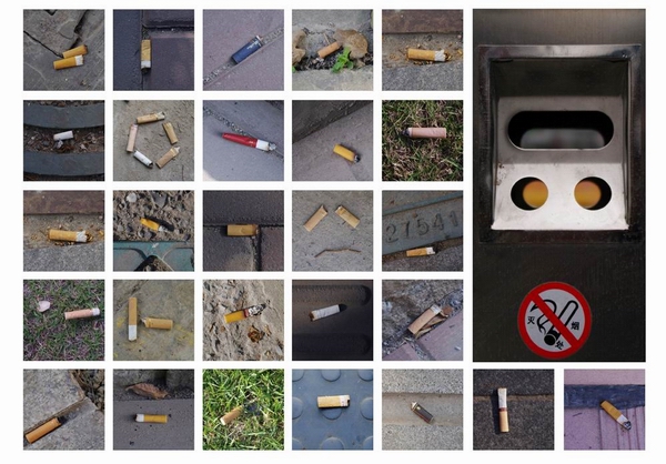 于是,我拿起相机,拍了100多张烟蒂,然后把它们组合在一起,最终形成一张图片。希望可以借此呼唤大家:绿色盛会,环保先行。