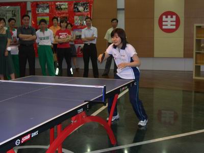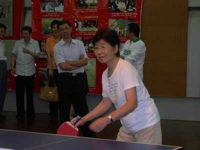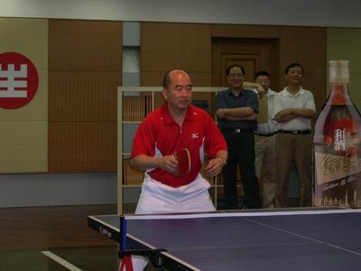 ??? 7月6日上午10:30,冠生园集团总部五楼多功能厅洋溢着中日新老乒乓球世界冠军欢聚的热烈气氛,新老乒乓球世界冠军木村、伊腾来了,李富荣、徐寅生、张燮林、梁戈亮、 郭跃华来了,福原爱、王励勤、郭跃也来了……这些曾多次在电视实况转播里见到的世界冠军和乒乓名将现在与我们这些乒乓球爱好者坐在一起,特别是前两天我还在电视直播中看到参加中国乒乓球公开赛的王励勤、郭跃、福原爱,马上与我们“真刀实枪”地比一场,心里真有些惊喜。