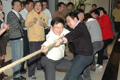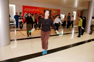 ??? 繁忙的工作需要健康的体魄,和谐的社会需要大家打造。光明乳业于2月8日举行了2007年度迎春员工运动会。在公司大堂里,员工们精神抖擞,兴高采烈参加体育比赛。比赛项目有员工喜闻乐见的广播操、跳绳、拔河、呼拉圈等体育项目。
