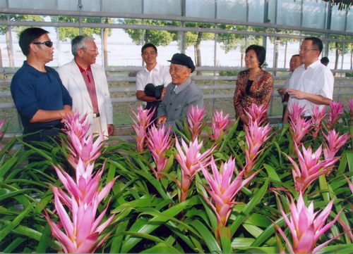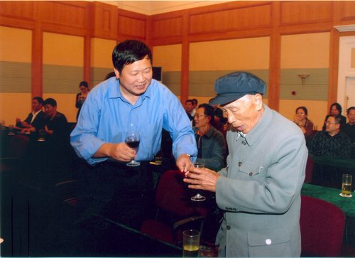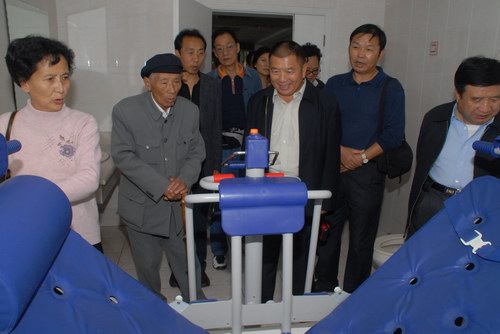 (杨善洲(右2) 参观上海市东海老年护理医院)
