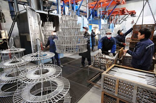 (申光公司达克罗车间工人正为风电市场生产并输送优质产品)
