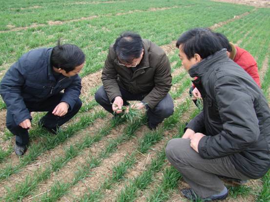 (郭文善教授现场查看二麦生产情况)