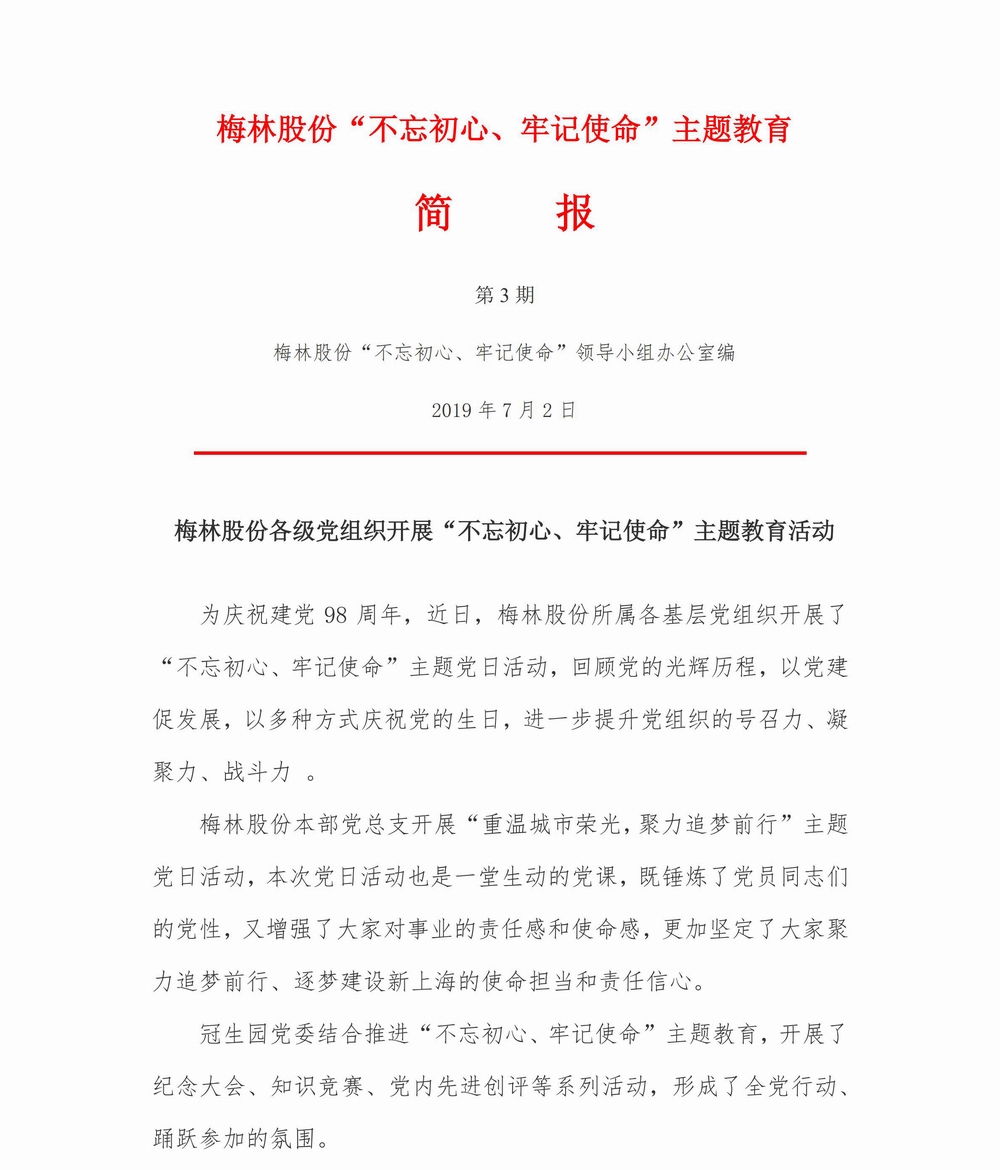 梅林股份简报(第3期)