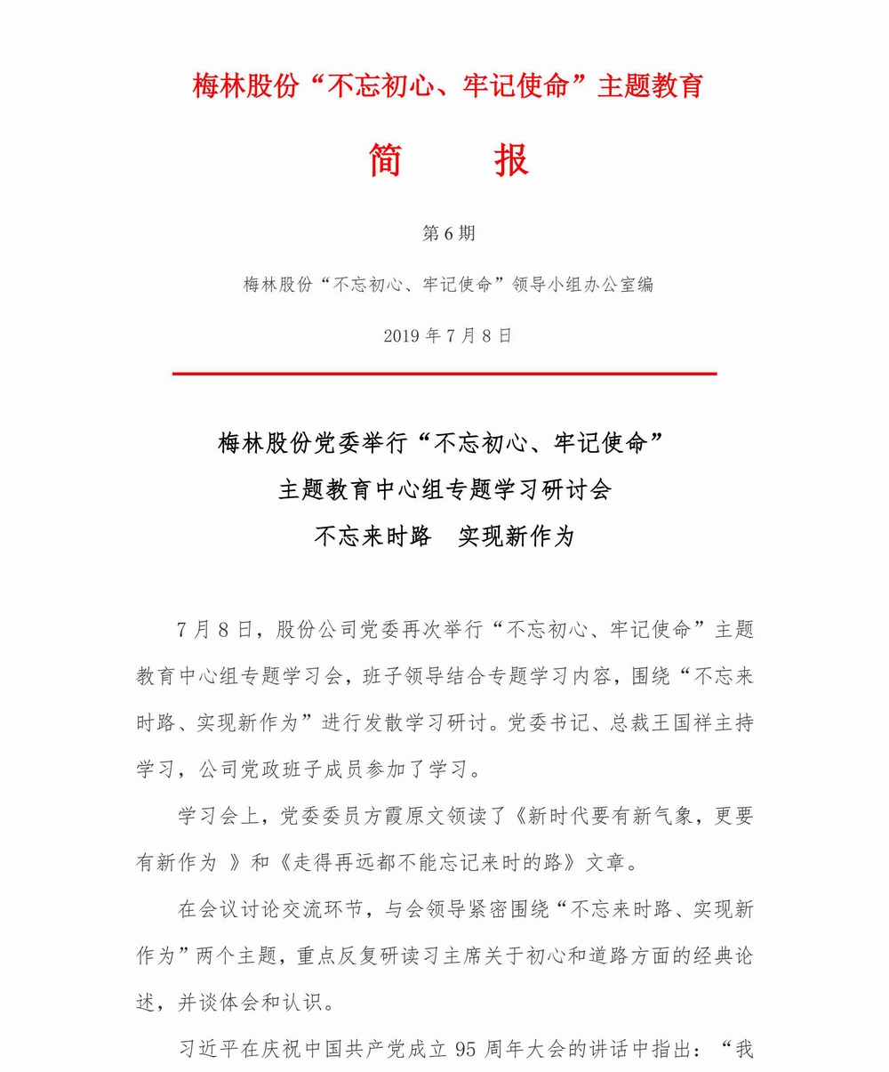 梅林股份简报(第6期)