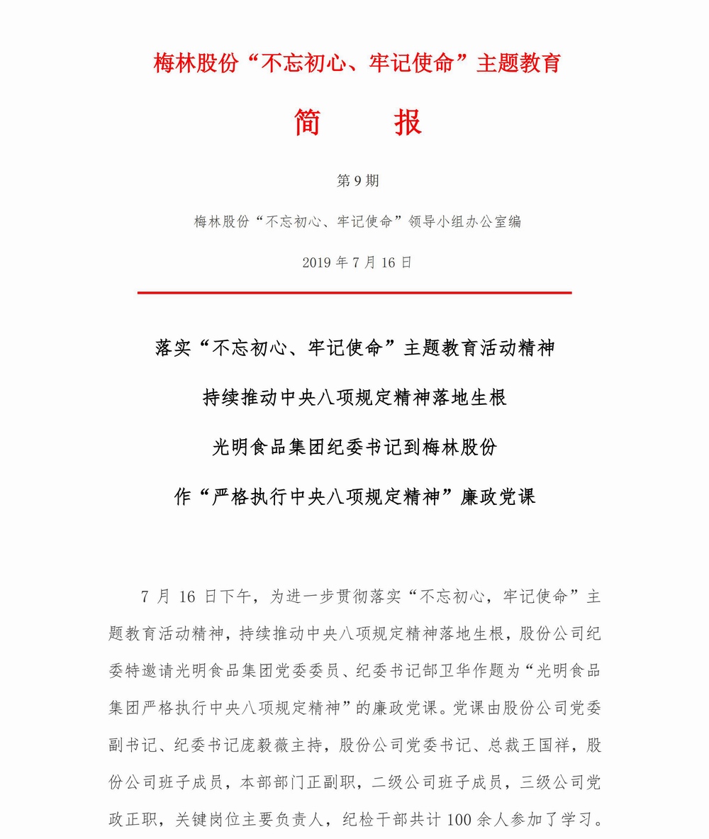梅林股份简报(第9期)