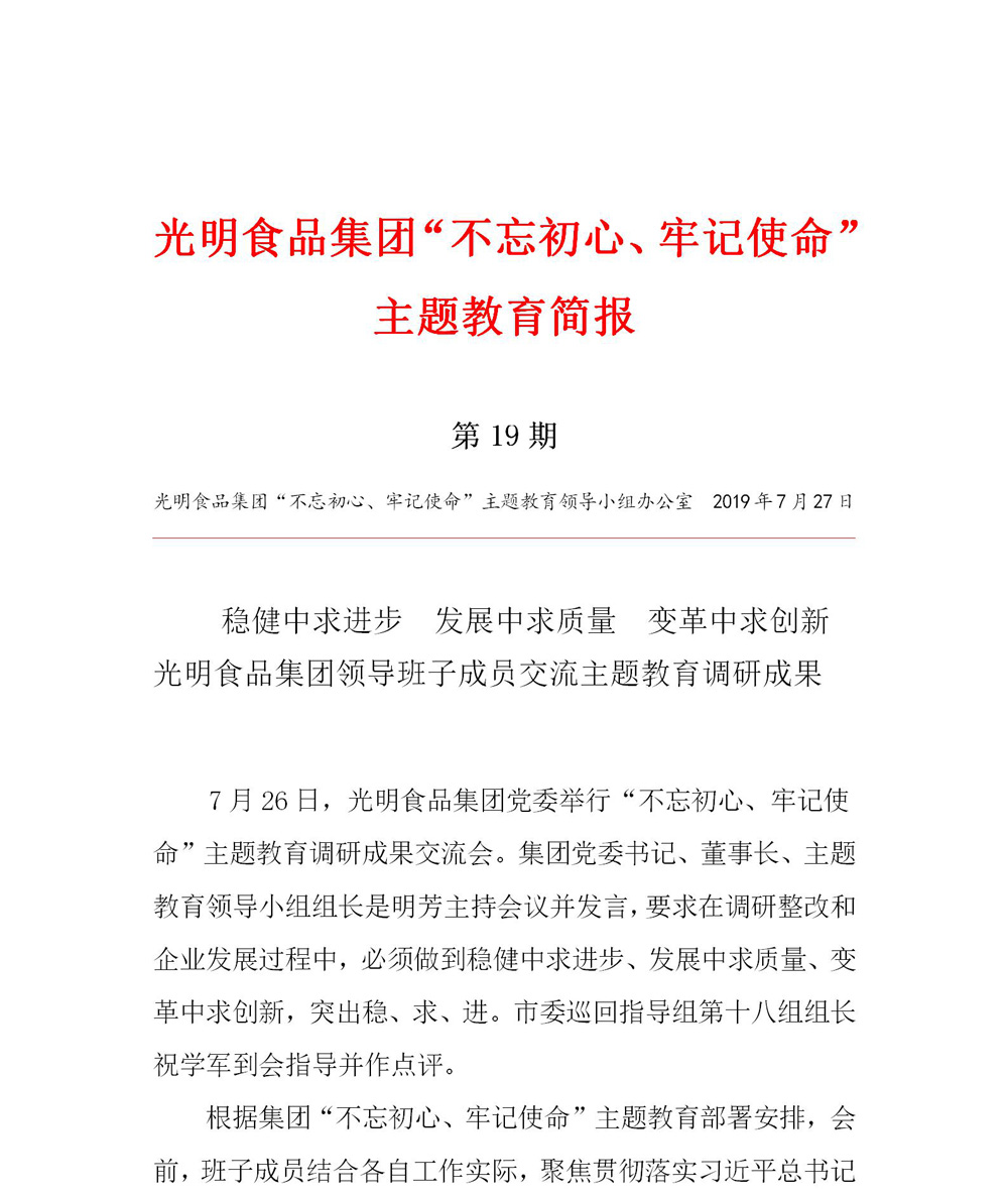 集团“不忘初心、牢记使命”主题教育简报(19)