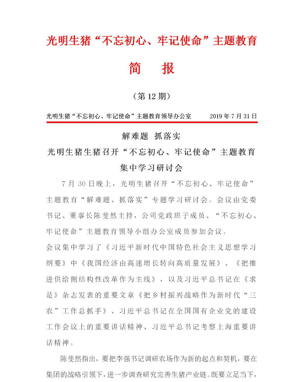 生猪公司简报(第12期)