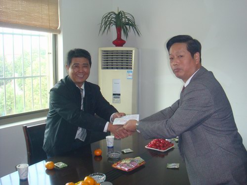 (受五四有限公司党政委托政治工作部负责同志给奉城镇分水墩村送上5万元帮扶金)
