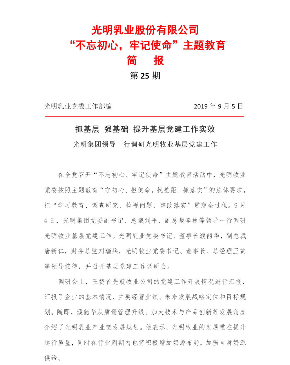 光明乳业简报(第25期)