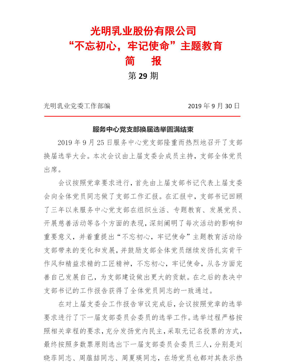 光明乳业简报(第29期)