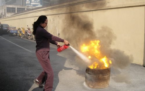 (员工进行消防演习)