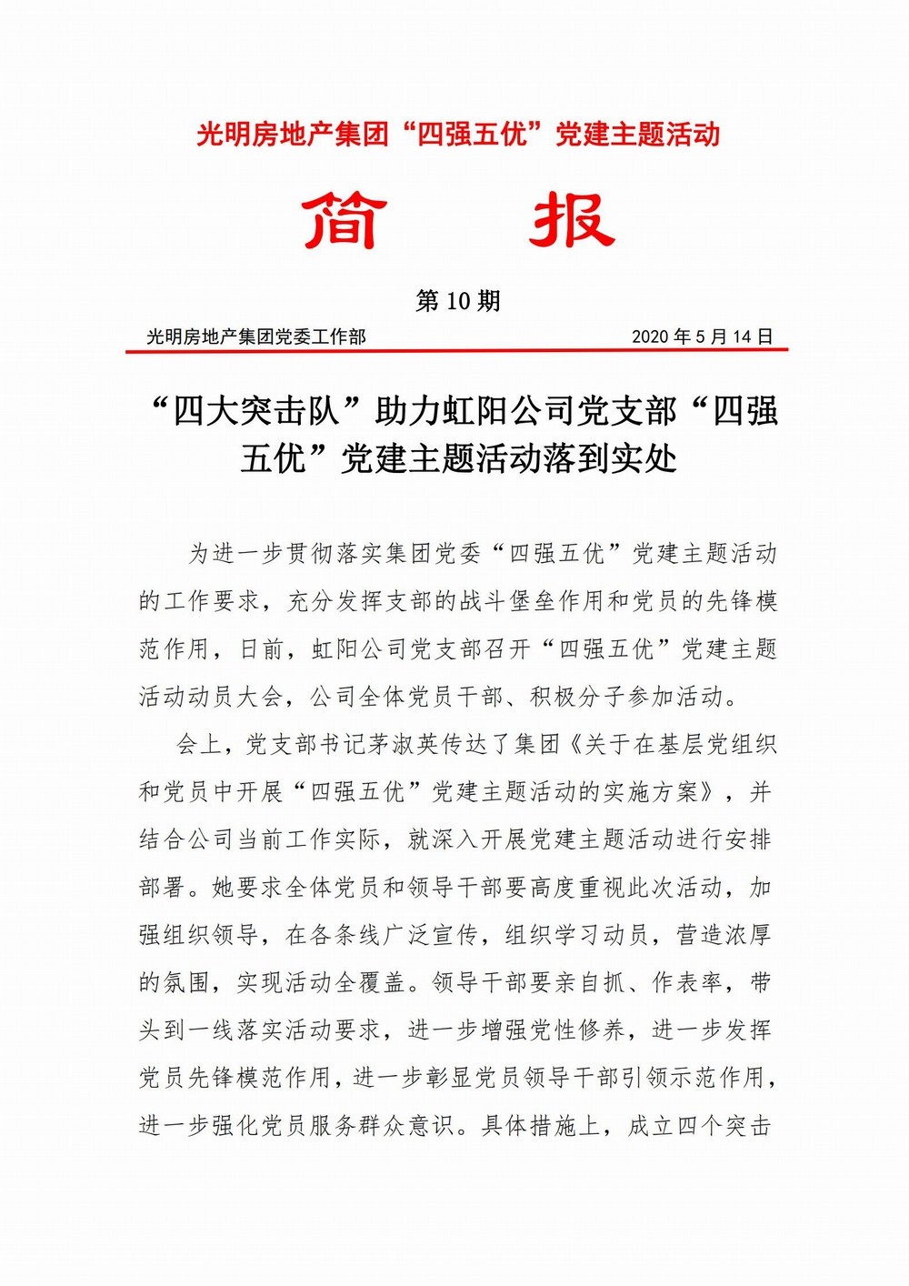 光明地产“四强五优”党建主题活动简报(第10期)