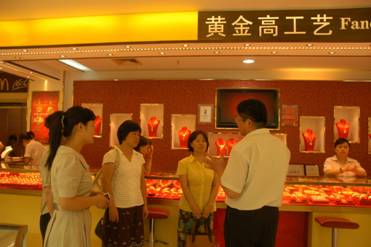 日前,上海市妇女联合会发展部部长孙美娥、副部长黄志英等领导在光明食品集团工会副主席姜伟、农房集团工会主席黄克铨、工会副主席毛孟梅、城隍珠宝党总支书记孟建华等领导的陪同下,来到城隍珠宝黄金高工艺柜,检查“巾帼文明示范岗”服务世博的工作情况。
