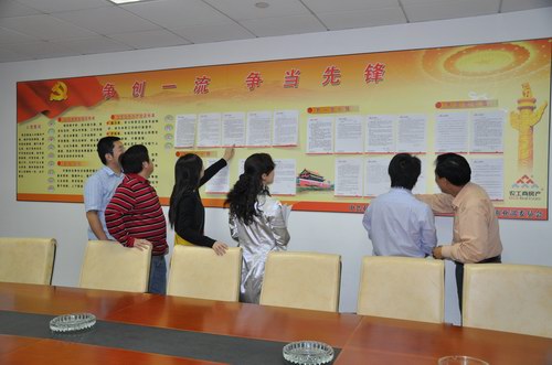 为保证创先争优党员公开承诺活动的效果,第一事业部党支部还专门在会议室的醒目位置制作了以“争创一流、争当先锋”为主题的板报,板报精练了此次创先争优活动的指导思想、创建要求、主要原则,并将全体党员亲笔写下的书面承诺张贴上墙,以接受职工群众的监督,督促党员履行承诺。