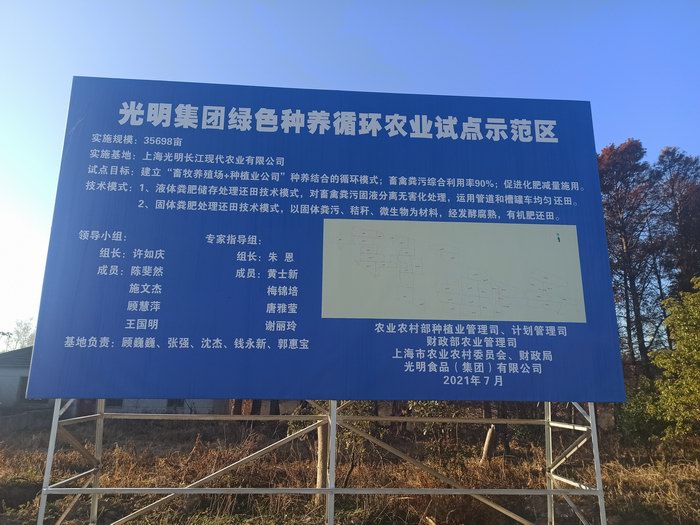 根据农业农村部办公厅、财政部办公厅《关于开展绿色种养循环农业试点工作的通知》、上海市农业农村委《关于做好2021年上海市绿色种养循环农业试点工作的通知》等相关文件精神,农业农村部从2021年开始通过财政补助奖励支持,计划在全国范围内开展区域内粪水就近还田5年试点,实现畜禽粪污综合利用率90%以上,促进化肥减量增效、耕地质量有效提升。 在全市5月31日绿色种养循环启动会议后,按照“开展10万亩农田、23家畜牧养殖场的绿色种养循环试点” 项目要求,集团高度重视、迅速启动, 一是成立了许如庆副总裁担任项目组长的“项目推进组”和“技术实施小组”;二是制定了2021年《光明食品集团绿色种养循环农业试点实施方案》、《光明绿色种养循环试点技术方案》、《光明集团粪液还田计划表》、《样品采集方案》;三是加强监管和统筹协调,集团所属上海跃进现代农业有限公司、上海光明长江现代农业有限公司、上海星辉蔬菜有限公司、上海鼎瀛农业有限公司4家种植业公司分别和23家养殖场签订了还田协议,并根据《畜禽粪便生态还田技术规范》规定了还田面积、还田区域分布、还田方式和还田量、检测要求和指标;四是加强检测,按照《畜禽粪便无害化处理技术规范》进水粪水收集、处理,聘请第三方检测公司对粪肥处理前、处理后的有效养分、重金属、大肠杆菌等进行检测,各项指标符合《沼肥》(NY/T2596-201)的国家行业标准方能还田,按照《地表水环境质量标准》的限量指标,还田后河道水COD浓度必须≤40mg/L中,确保不造成二次污染。同时土壤养分、重金属等检测指标须符合《土壤环境质量农用地土壤污染风险管控标准(试行)》;五是制定《农田调查方案》,开展示范区农田和非示范区农田施肥情况对比调查,对农事操作进行详细的建档记录,四家试点单位已完成50块田的施用总量、施肥结构、粪水施用比例、各类型肥料用量及施用方式的记载。六是三家试点单位(长江农业、跃进农业、星辉蔬菜)根据《上海市绿色种养循环农业项目技术方案》及养殖场粪液养分含量,制定2021年《粪液替代化肥减量试验》方案,开展粪水替代试验。七是根据化肥、农药、农机、人工、产量等情况,综合评估粪水还田经济效益和生态效益。 经过半年多种养循环试点项目的实施,项目已通过市农业农村委组织的中期验收。该项目共对存栏16087头11家奶牛场、存栏14万头12家猪场的341081.3吨粪水进行了还田,还田面积达到100032亩,绿色种养循环试点工作的实施,有效解决了养殖场产生的粪污水,杜绝了周边水体污染,解决了养殖场在粪污处理方面的后顾之忧,为畜牧业生态高质量发展打下了基础。同时增加了农田土壤有机质含量,提高了农作物的产量和品质,化肥使用量显著减少,其中水稻减幅10%、玉米减幅18.4%、饲料大麦减幅20.5%。 在后续项目实施中,将进一步提升养殖场粪污收集和处理能力,做好源头控水、还田管网建设、资金使用和粪肥还田等档案资料;同时进一步加强种植业粪肥还田检测,做好各项试验、示范、绩效评估。准备通过2021年、2022年的种养结合试点,力争在全市率先制定出粪水还田的制度、标准、操作规范,做到科学还田、标准还田、精准还田,全面推动农业绿色高质量发展,形成绿色种养循环农业技术模式。