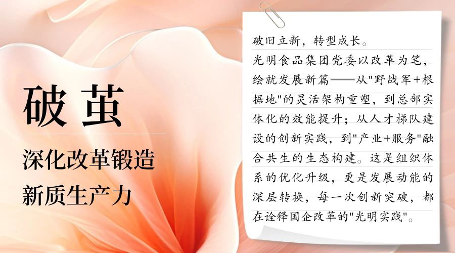 立足长三角一体化发展新格局,光明食品集团以创新驱动产业升级,2024年10月成立的企业发展公司以城市更新为契机,对"沿江、沿港、沿河"分布的存量资产实施精准盘活,让承载着工业记忆的老旧资产焕发新生,实现国有资产保值增值与城市品质提升的良性互动。2025年2月成立的产投公司,着力打造智慧化供应链服务平台,通过整合通关、仓储、配送等全链条服务能力,为"双循环"战略下的农产品流通注入新活力。
