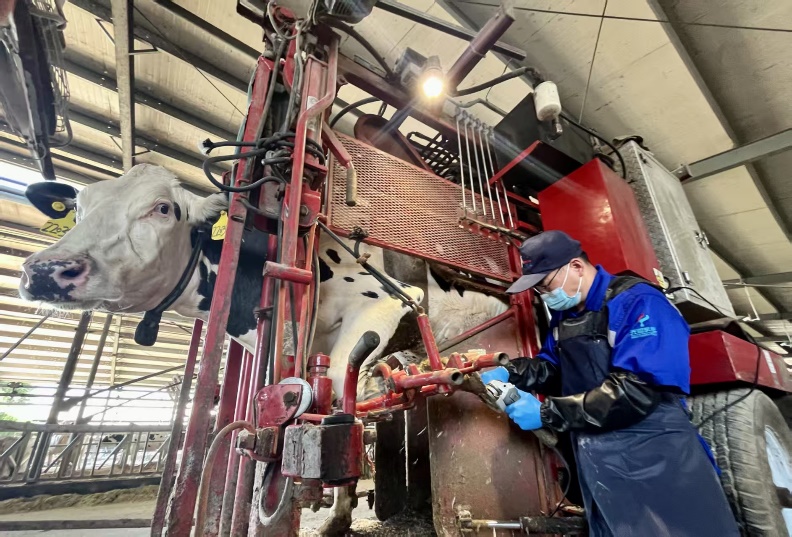 走进容纳着3000多头成年奶牛的光明金山牧场,记者实地探访了“奶牛美甲师”邵长亮的一天。