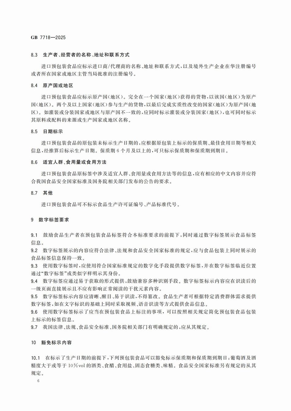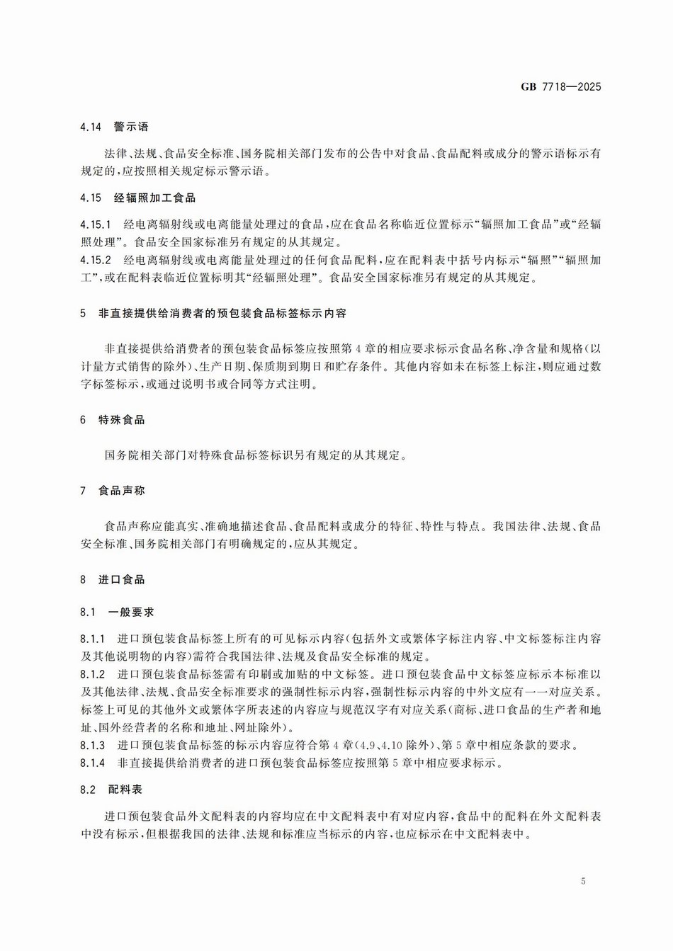 GB7718—2025? 食品安全国家标准 预包装食品标签通则