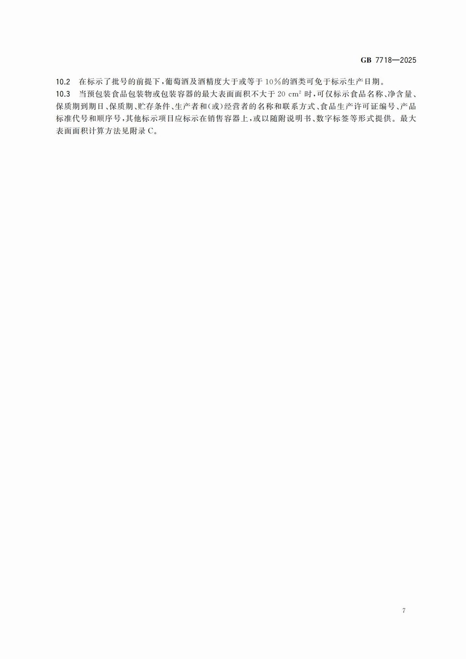 GB7718—2025?食品安全国家标准 预包装食品标签通则