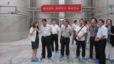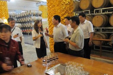 (五四有限公司总经理祁瑞芝等了解葡萄酒酿酒工艺)