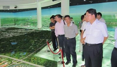 (五四有限公司总经理祁瑞芝等考察团成员参观天津滨海新区规划展示馆)