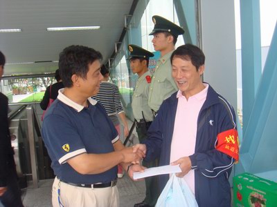 国庆佳节来临之际,五四有限公司党委十分关心坚守在地铁8、9号线陆家浜路站七号出入口的世博轨交安保执勤的志愿者,9月29日下午,公司政治工作部的负责同志受党委委托专门前往执勤道口进行慰问,转达公司党政领导对他们的节日问候,并把光明食品集团党委组织部的慰问信和公司党委的慰问品亲手送到志愿者手中。