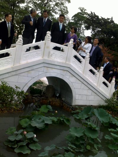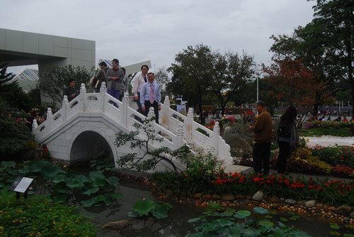 ?? “接天莲叶无穷碧,映日荷花别样红”,这些原来只有在夏季才能欣赏到的美景,让人们惊叹在深秋初冬的宝岛台湾也成为了现实,在小桥流水的映衬下,这些荷花显得格外“耀眼”,吸引了大批的游客前来观赏,台北市市长郝龙斌和海基会会长江丙坤也兴致勃勃的来到荷花池边,观赏由上海鲜花港提供的荷花。