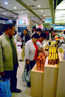 在第一食品的各个门店青年志愿者们不仅非常注重自己的服务礼仪,也会很详细地向顾客介绍商品,会很耐心地回答人们的各种问题,例如,有的消费者认为这里的商品价格比超市里或其他某处同种产品的价格要贵,有的则认为益民食品在某种产品上的创新不够,怎么那么多年了还是在生产和销售老产品等等,志愿者们就会从生产成本,市场需求等方面进行解释,同时,他们也认真听取了消费者对于产品的意见和建议,例如,某种产品包装需改进等等,一些合理化的建议,志愿者们也都带回交给相关部门参考讨论。