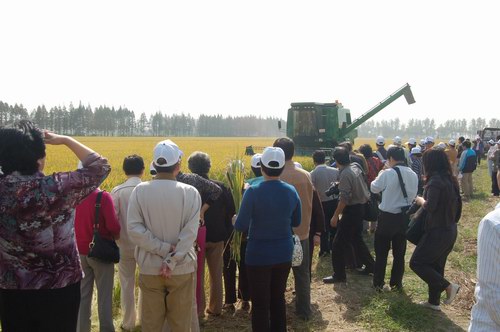自“2010上海崇明.光明丰收节”十月十六日开幕以来,特色浓郁、精采纷呈的现代农业丰收景象深深吸引了广大游客,至二十四日短短一个多星期内,跃进有限公司已接待游客4000多人,农副产品销售达到十多万元,游客购买大米10多吨。一辆辆旅游大巴在公路上奔驰,一群群人群在田间、园林涌动,成为跃进有限公司一道亮丽的风景线。