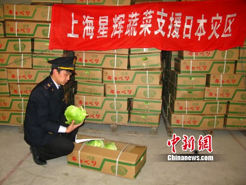 (中新社图片转载:上海都市农商社“星辉蔬菜” 紧急驰援日本灾区出口蔬菜的供应工作)