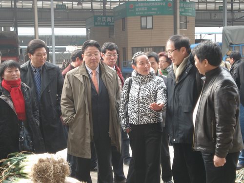 (五四有限公司基层党政干部沙龙考察团询问湖北四季美农贸城经营情况)