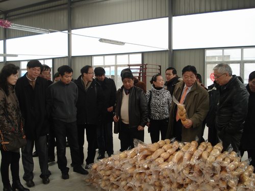 黄陂区农产品加工园是全国率先创办农业产业化示范园,也是湖北省首批确定的九个农业产业化示范园之一,目前已形成了农产品加工产业集群,延伸和拉长了农业产业链条,尤其是武汉新辰食品公司以近5万亩芦笋生产基地为龙头,快速带动了黄陂区芦笋产业的发展,并形成了集食品、蔬菜、水产、冻品、粮油和花木大世界等6个专业一级批发市场和1个综合仓储物流园区,是全国在建的唯一同时拥有自建码头、专用铁路线、冷库群及五星级仓储物流园区的大型农贸专业批发市场??疾焱懦稍痹谌险嫣『褪档乜疾煺鑫浜菏写蛟炫┮挡盗吹姆⒄构婊樯芤约盎期榕┎芳庸ぴ扒ㄉ璺⒄骨榭龊?,深感他们的大胆而具创新发展的理念、敢为人先的竞争意识和因地制宜注重效益的经营方法值得五四人学习和借鉴,表示要充分吸黄陂区现代都市农业建设中积累的好经验、好做法,进一步探索和研究如何利用全国资源,整合自己现有的农业资源资产,做强做亮以国家级农业产业化重点龙头企业“都市农商社”和以“都市菜园”为品牌的都市农业,通过深化农业资源整合,打通五四公司都市农业产业链最后一公里,实现“都市菜园”连锁销售网络、循环农业工厂化食用菌生产、绿叶净菜深加工、种源种苗和农业观光旅游等业务新突破?! 。蹑?文? 顾贤杰/图)
