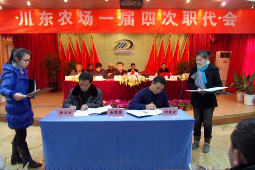 2011年1月13日,川东农场召开一届四次职代会。川东农场党政班子成员、农场五个职工代表团的52名代表参加了会议。工会主席郑建民同志主持了会议。