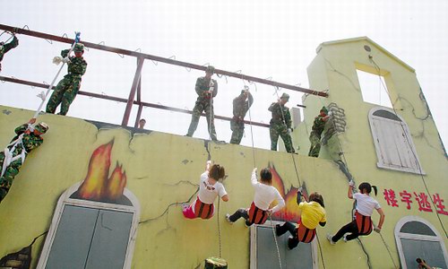 11月16日集团传达了全市防火安全工作紧急会议精神之后,农工商国旅总经理赵峻峰根据多年的拓展培训经验,当晚立即整理出了一套针对高层办公楼的火灾、地震的应急逃生和急救课程。三天内,就有摩托罗拉、联想电脑、中宏保险等近十家企事业客户单位预约了这套课程,作为落实防火安全工作的具体措施。