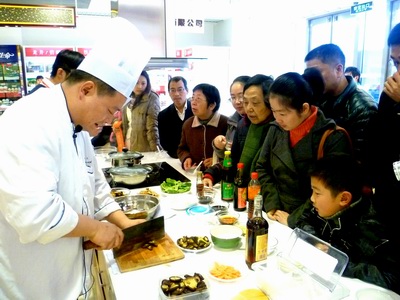 ??? 活动中,大厨现场演示了竹荪云腿鸡片汤和鼎湖上素两道菜肴的制作方法,全程使用在第一食品就可买到的普通食材,吸引了众多消费者试吃品尝?;疃谖颜叽捶欠参毒跸硎艿耐?,现场所陈列的原料食材得到了充分展示,引得不少消费者当即选购,当日南桥店的总体销售额也因此得到了明显提升。(陈静/文摄)