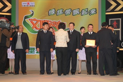 12月25日上午,由市文明办、市公安局交警总队、上海人民广播电台联合策划发起的“文明过路口、安全保通畅”公益活动举行颁奖典礼。这是继10月20日、11月20日成功举行两场专场活动后,于25日再次吹响交通文明的集结号,在上海电视台广电大厦举行“绿丝带飘起来”颁奖典礼,揭晓上?!笆盐拿髀房凇?、“十佳文明公交线路”和“十佳文明出租车司机”。丁健章、赵德华等司机摘得“十佳文明出租车司机”称号,海博出租副总经理蒋华康和海博团委书记郑超率领25名团员青年参加了颁奖典礼。