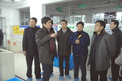 (佟福财一行参观长江德科公司生产现场)