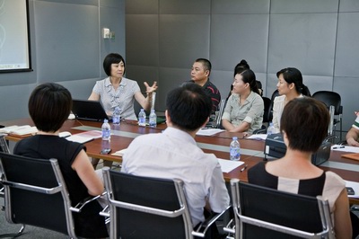 (公司质量部门负责人向监督员介绍食品安全工作实施情况)
