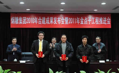 烟糖集团党委书记李国忠充分肯定了2010年合建活动成果:一是紧密联系实际;二是专业水平突出;三是经济效益明显;四是组织推进有方。对开展2011年金点子工程提出三点要求:(1)思想上高度重视,进一步提高合建活动的认知水平。合理化建议活动是集聚职工聪明才智的有效平台,是开展创先争优的有效抓手,是丰富工会工作的有效途径。(2)聚焦企业重点,进一步促进企业发展。合建目的要紧紧围绕创新、驱动、转型、发展;合建涉及范围、重点、专业技术、衡量标准。(3)坚持不懈推进,进一步提高合建领导水平。要细分合建具体项目;要给金点子正确引导;要对金点子认真组织实施;要不断总结、推进。