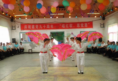“我们所有的胜利,所有的成就,祖国繁荣昌盛,农场欣欣向荣,都是因为有党的坚强领导。歌唱党,歌唱祖国,既是时代的主旋律,更是我们每个人心里的呼唤?!本用衩堑难莩龇岣欢嗖?,有红歌大合唱,“夕阳红”小分队自编自演的腰鼓和扇子舞,口琴独奏,沪剧,独唱等,得到观众阵阵掌声。